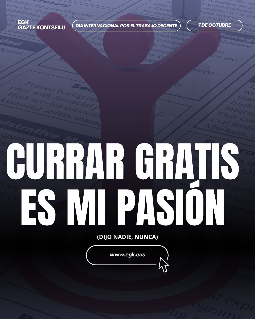 El Consejo de la Juventud de Euskadi (EGK), también este 7 de octubre, Día Internacional por el Trabajo Decente, ha visto necesario dar a conocer y visibilizar las diferencias entre las dos modalidades principales de prácticas —las prácticas curriculares y la formación dual—y para ello, EGK ha creado un tríptico.