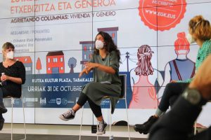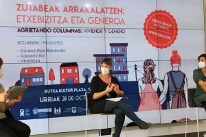 El análisis de la vivienda desde la perspectiva de género es necesario para que ésta responda también a nuestras necesidades. A continuación tienes las fotografías de la jornada Zutabeak Arrakalatzen que realizamos este sábado, 31 de octubre. Este espacio organizado en Kutxa Kultur Plaza contó con la participación de la arquitecta urbanística feminista Oihane Ruiz Menéndez, la asociación de arquitectura Kalean Bizi y la cooperativa de vivienda Abaraska. El encuentro constó de dos apartados: