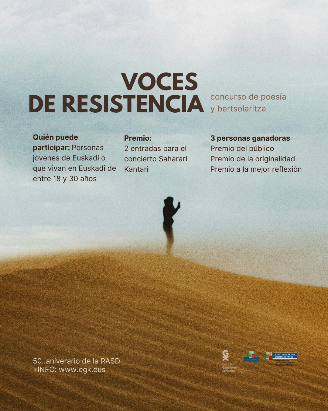 Este 2026 celebramos el 50.º aniversario de la República Árabe Saharaui Democrática y queremos invitarte a expresar tu creatividad y solidaridad a través del concurso de poemas y bertso: “Voces de la Resistencia”.